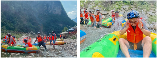 一路上激流不断,一个急流,一个跌落,浪打上来,从头到脚都被水浇一遍。途中还能靠岸休息,大家纷纷下水打水仗,河水清澈凉爽,扑打在身上实在舒服。